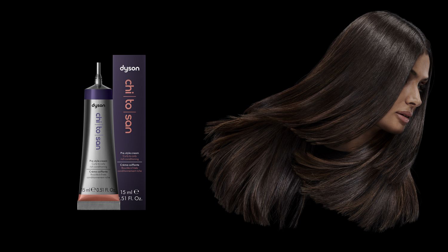 However, Dyson Chitosan™ Pre-style cream and Post-style serum are the only styling products specifically designed and tested to work with Dyson hair care devices, following the same engineering mindset. So if you already own a Dyson hair care device, or you’re looking to buy one, the Dyson Chitosan™ hair styling range is the perfect partner to help your styles last longer¹, even in high humidity.²