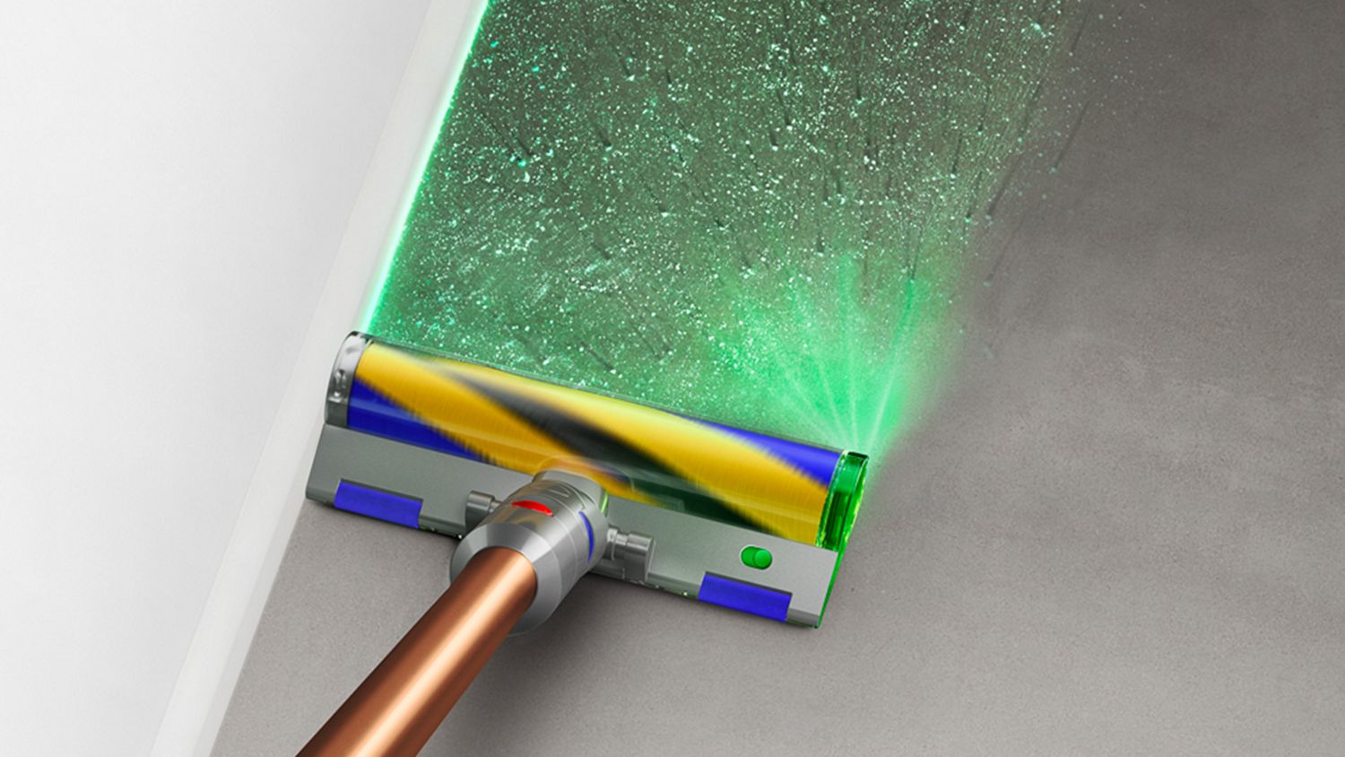 A precisely angled blade of light reveals twice the amount of invisible dust on hard floors.